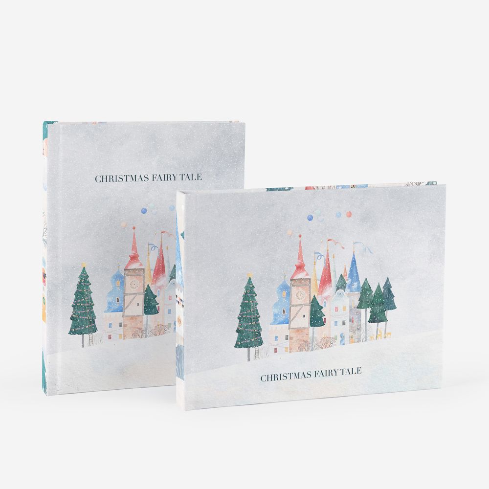 Com tons frios e ilustrações que lembram uma aldeia de inverno, o Christmas Fairy Tale é ideal para quem vive o Natal com calma. Um álbum para juntar fotografias de dias lentos, ruas iluminadas e momentos que sabem a inverno.
