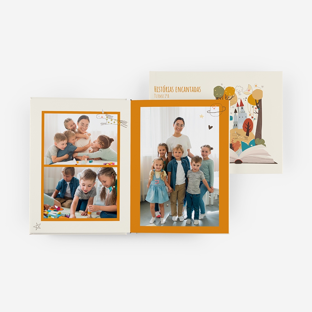 A capa rígida em cartão duro oferece proteção adicional e um acabamento elegante ao teu álbum.