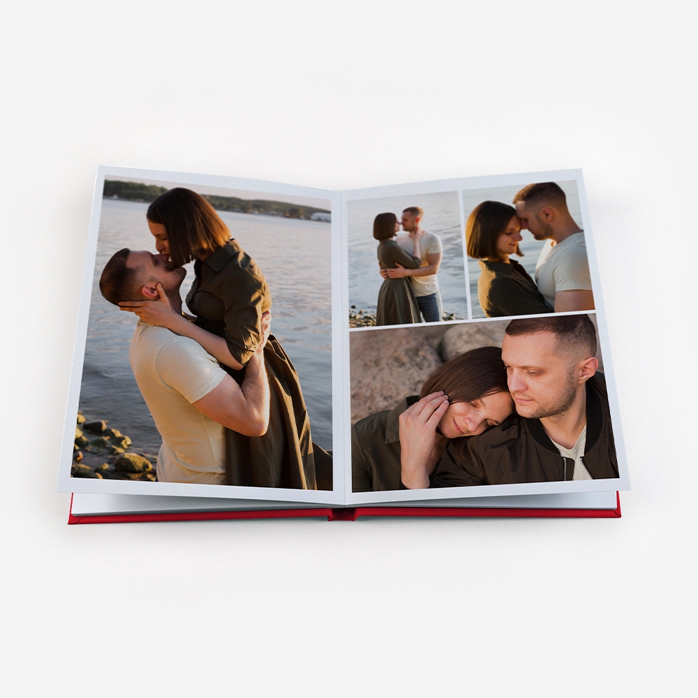 Os Álbuns de Fotos Dreambooks apresentam uma abertura panorâmica, com a possibilidade de colocar uma foto em destaque ocupando duas páginas. Desta forma, desfrutarás de uma visualização perfeita das tuas fotos, sem cortes ou partes escondidas.