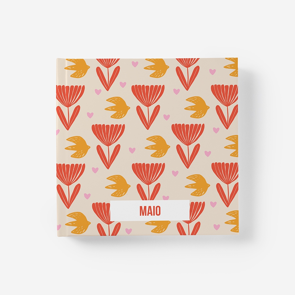 Álbum de cartão resistente, com folhas em branco apropriadas para colagem de fotos.
