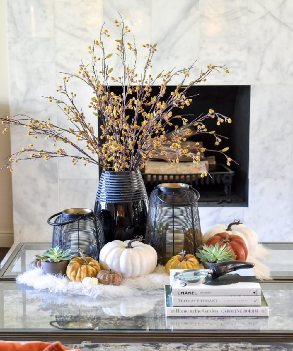 Outra sugestão: faz pequenos arranjos com flores secas e frutas sazonais, como abóboras pequenas. Estes arranjos podem ser dispostos em prateleiras ou mesas e são uma maneira simples de trazer a beleza do outono para dentro de casa.