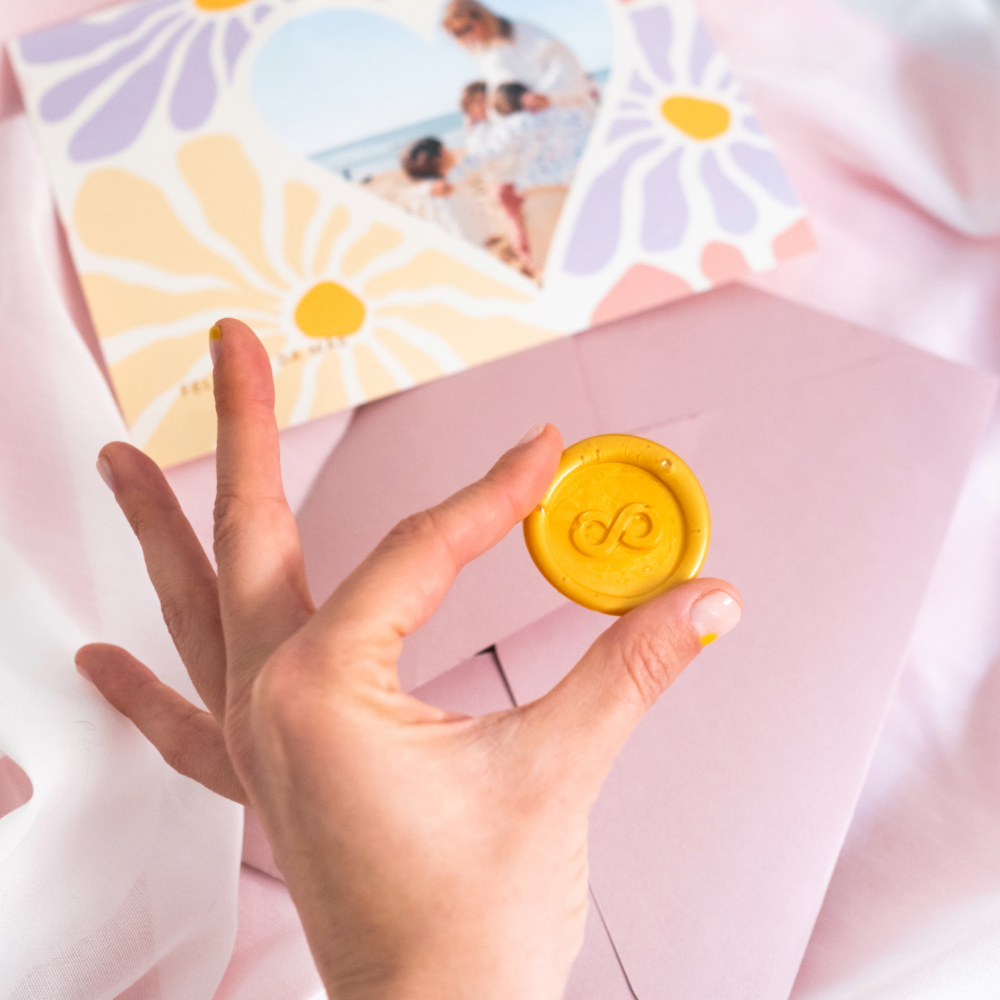 Também podes pedir para os envelopes serem fechados com lacre mediante um extra de 1,35€. O lacre está disponível em 12 cores diferentes. Fica um convite de casamento verdadeiramente especial.