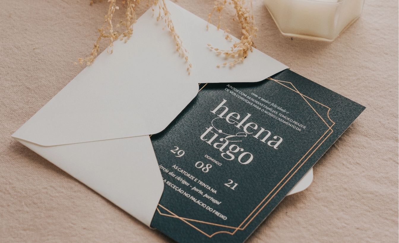 Os convites de casamento são o primeiro contacto com os teus convidados. Podes optar por modelos clássicos, florais, rústicos, modernos ou originais, adicionar frases únicas e até incluir uma foto vossa.