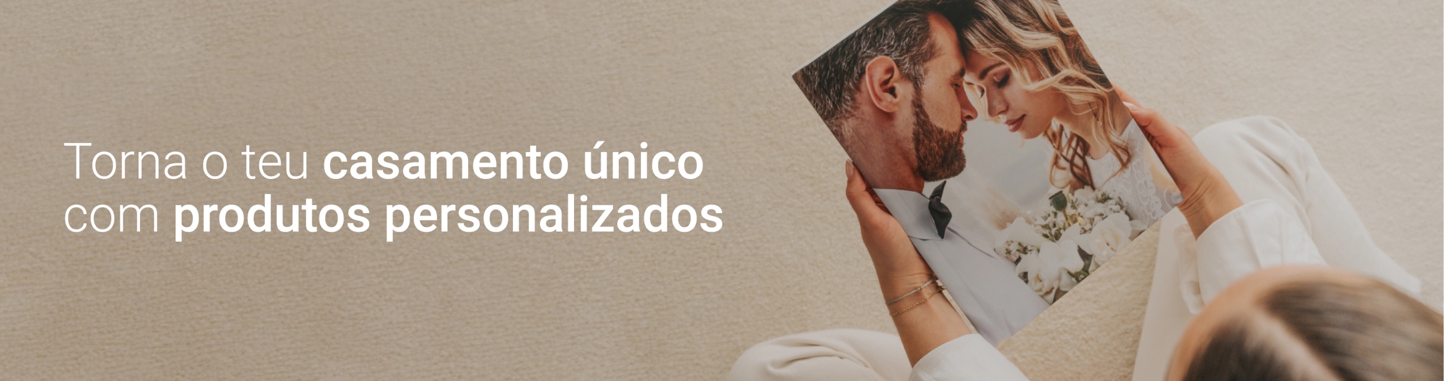 Os álbuns para casamento também fazem parte e são ideais para guardar as melhores recordações e podem ser personalizados com diferentes tipos de capa, papel e acabamento. Se ainda não sabes como fazer um álbum de casamento, não te preocupes — o nosso editor online é simples e intuitivo. Assim que recebas as fotos da tua cerimónia, basta seleccionares o melhor de cada parte - dos preparativos, aos vossos convidados, passando claro pelo momentos do “Sim, Aceito”, até à grande festa, onde nunca se esquece a primeira dança ou corte do bolo.